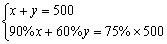 把濃度分別是90%和60%的甲乙兩種酒精溶液,配制成濃度為75%的消毒酒精溶液500克,求甲、乙兩種酒精溶液各取多少克?