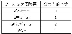 | d,a,r之間的關(guān)系 | 公共點(diǎn)的個數(shù) |