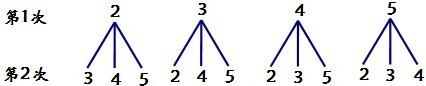 從同一副撲克牌中拿出黑桃2,3,4,5,背面朝上洗勻后擺在桌面上,從中隨機(jī)抽取一張(不放回),再?gòu)氖O碌?張中隨機(jī)抽取第二張.