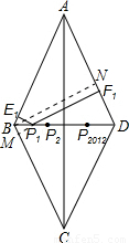 如圖,已知菱形ABCD的邊AB=10,對(duì)角線BD=12,BD邊上有2012個(gè)不同的點(diǎn)