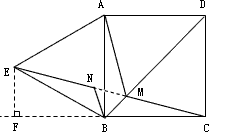 | (3)過E點(diǎn)作EF⊥BC交CB的延長線于F, ∴∠EBF=90°-60°=30°, 設(shè)正方形的邊長為x,則BF= 在Rt△EFC中, ∵EF2+FC2=EC2, ∴( 解得,x= ∴正方形的邊長為 |