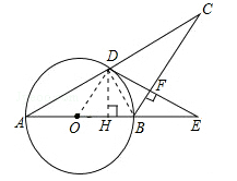 如圖,在△ABC中,AB=BC,以AB為直徑的⊙O與AC交于點(diǎn)D,過D作DF⊥BC,交AB的延長線于E,垂足為F.