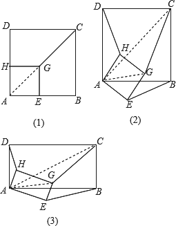 (1)如圖(1),正方形AEGH的頂點(diǎn)E、H在正方形ABCD的邊上,直接寫出HD:GC:EB的結(jié)果(不必寫計(jì)算過程);