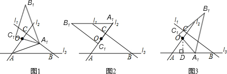 ③如圖3,點(diǎn)A1在直線l3上時(shí),過點(diǎn)O作OD⊥AB于D,