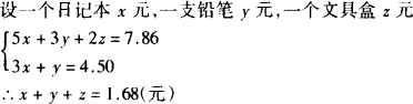 若買5個日記本,3支鉛筆,2個文具盒要用7元8角6分,買3個日本記,1支鉛筆要用4元5角,那么買1個日記本,1支鉛筆,1個文具盒要用________.