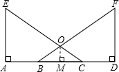 精英家教網(wǎng)已知:如圖,點A、B、C、D在同一條直線上,EA⊥AD,F(xiàn)D⊥AD,AE=DF,AB=DC.BF,CE相交于點O.