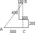 A出發(fā)先向正東走了800米,再向正北走200米,折向正西走300米,再向正北走600米,再向正東走100米,到達(dá)了寶藏B處,問(wèn)A、B之間的最短距離是多少?|