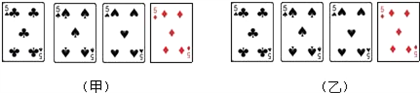 如圖(甲)所示的四張牌,若只將其中一張牌旋轉(zhuǎn)180°后得到圖(乙),則旋轉(zhuǎn)的牌是( )