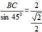 由(1)得∠BAC=45°,