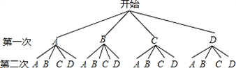 一個口袋中有4個相同的小球,分別與寫有字母A、B、C、D,隨機(jī)地抽出一個小球后放回,再隨機(jī)地抽出一個小球.