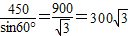 汶川地震后,搶險(xiǎn)隊(duì)派一架直升飛機(jī)去A、B兩個(gè)村莊搶險(xiǎn),飛機(jī)在距地面450米上空的P點(diǎn),測(cè)得A村的俯角為30°,B村的俯角為60°(如圖).則A、B兩個(gè)村莊間的距離是( )米