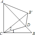 分析:根據(jù)折疊可得:∠1=∠2,BC=CB′,然后根據(jù)等腰直角三角形的性質(zhì)得到AC=BC,∠CAB=∠B=45°,再計(jì)算出∠CAB′的度數(shù),進(jìn)而可算出∠ACE的度數(shù),再根據(jù)∠ACB=90°,可算出∠1+∠2的和,再根據(jù)三角形的外角和內(nèi)角的關(guān)系計(jì)算出∠CDA的度數(shù).