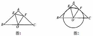 如圖1所示,在△ABC中,AB=AC=2,∠A=90°,O為BC的中點(diǎn),動(dòng)點(diǎn)E在BA邊上自由移動(dòng),動(dòng)點(diǎn)F在AC邊上自由移動(dòng).