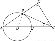 點評:此題考查的知識點是切線的判定及弧長的計算,關(guān)鍵是作輔助線和已知先得出∠OEC=90°及由已知求出∠AOD=120°.