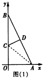 | 解:(Ⅰ)如圖(1),折疊后點B與點A重合,連接AC, 則△ACD≌△BCD, 設點C的坐標為(0,m)(m>0), 則BC=OB-OC=4-m, 于是AC=BC=4-m, 在Rt△AOC中,由勾股定理,得AC2=OC2+OA2, 即(4-m)2=m2+22,解得m= ∴點C的坐標為 |