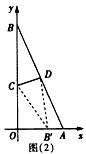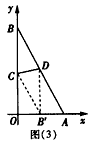 | (Ⅲ)如圖(3),折疊后點B落在OA邊上的點為B′,連接B′C,B′D,B′D∥OB, 則∠OCB′=∠CB′D, 又∵∠CBD=∠CB′D, ∴∠CB′=∠CBD, ∴CB′∥BA, ∴Rt△COB′∽Rt△BOA, 有 得OC=20B′, 在Rt△B′OC中,設OB′=x0(x0>0),則OC=2x0, 由(Ⅱ)的結論,得2x0= 解得x0= ∵x0>0, ∴x0= ∴點C的坐標為 |