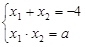【解析】可利用兩根之和是-4,與2x1-x2=7聯(lián)立組成方程組,解方程組即可求出x1、x2的值.再利用兩根之積公式求出a的值.