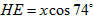 sin74°≈0.96,cos74°≈0.28,tan74°≈3.49,sin76°≈0.97,cos76°≈0.24)
