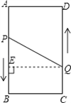如圖,A、B、C、D為矩形的四個(gè)頂點(diǎn),AB=16cm,AD=6cm,動(dòng)點(diǎn)P、Q分別從點(diǎn)A、C同時(shí)出發(fā),點(diǎn)P以3cm/s的速度向點(diǎn)B移動(dòng),一直到達(dá)B為止,點(diǎn)Q以2 cm/s的速度向D移動(dòng)。