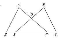如圖,點(diǎn)E,F(xiàn)在BC上,BE=CF,∠A=∠D,∠B=∠C,AF與DE交于點(diǎn)O。