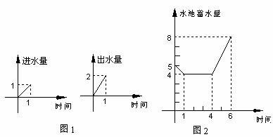 為了增強(qiáng)抗旱能力,保證今年夏糧豐收,某村新修建了一個(gè)蓄水池,這個(gè)蓄水池安裝了兩個(gè)進(jìn)水管和一個(gè)出水管(兩個(gè)進(jìn)水管的進(jìn)水速度相同)一個(gè)進(jìn)水管和一個(gè)出水管的進(jìn)出水速度如圖1所示,某天0點(diǎn)到6點(diǎn)(到少打開(kāi)一個(gè)水管),該蓄水池的蓄水量如圖2所示,并給出以下三個(gè)論斷:①0點(diǎn)到1點(diǎn)不進(jìn)水,只出水;②1點(diǎn)到4點(diǎn)不進(jìn)水,不出水;③4點(diǎn)到6點(diǎn)只進(jìn)水,不出水。則一定正確的論斷是( )
