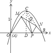 ①過(guò)C作CD⊥x軸于D,連接CQ;根據(jù)拋物線的解析式,易求得點(diǎn)C的坐標(biāo),即可得到AD、CD的長(zhǎng),由此可求出∠BAC=60°,根據(jù)拋物線的對(duì)稱性即可得到∠ABC=∠BAC=60°,由此可知△ABC是等邊三角形,而△AMP、△BNP也是等邊三角形,那么M、N分別在線段OC和線段BC上;易知CM∥PN,MP∥BC,則四邊形PNCM是平行四邊形,而Q是MN的中點(diǎn),則Q也是CP的中點(diǎn),即C、Q、P三點(diǎn)共線,由此可得PC=2PQ;在等邊三角形ABC中,P在線段AB上運(yùn)動(dòng),且不與A、B重合,因此PQ的取值范圍應(yīng)該在AD和AC長(zhǎng)之間,可據(jù)此求出PQ的取值范圍;