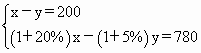 某工廠去年的利潤(總產(chǎn)值一總支出)為200萬元.今年總產(chǎn)值比去年增加了20%,總支出比去年減少了10%.今年利潤為780萬元,去年的總產(chǎn)值、總支出各是多少萬元?