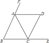 ∴∠ACB=60°,∠FAC=∠ACE=120°,