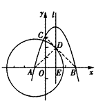 | (3)①連接AD,設(shè)直線l與x軸的交點(diǎn)記為點(diǎn)E, 由(2)知:當(dāng)AD+CD最小時(shí),點(diǎn)D的坐標(biāo)為(1,2), ∴DE=AE=BE=2, ∴∠DAB=∠DBA=45°, ∴∠ADB=90°, ∴AD⊥BD, ∴BD與⊙A相切; ②(1,-2)。 |