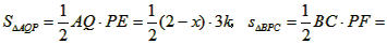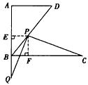 | 解:(1)∵AD∥BC,∠ABC=90°, ∴∠A=∠ABC=90°, 當(dāng)AD=2時(shí),AD=AB, ∴∠D=∠ABD=45°, ∴∠PQC=∠D=45°, ∴ ∴PQ=PC, ∴∠C=∠PQC=45°, ∴∠BPC=90°, ∴PC=BC·sin45°= (2)如圖,作PE⊥AB于E,PF⊥BC于F, ∵∠ABC=90°, ∴四邊形EBFP是矩形, ∴PF=BE, 又∵∠BAD=90°, ∴PE∥AD, ∴Rt△BEP∽R(shí)t△BAD, ∴ ∴ 設(shè)BE=4k,則PE=3k, ∴PF=BE=4k, ∵BQ=x,AQ=AB-BQ=2-x, ∴ ∵ ∴ (3)如圖,作PE⊥AB于E,PF⊥BC于F ∵∠ABC=90° ∴四邊形EBFP是矩形, ∴PF=BE,∠EPF=90°, 又∠A=90°, ∴PE∥AD, ∴Rt△BEP∽R(shí)t△BAD, ∴ ∴ 又∵ ∴ ∴Rt△PCF∽R(shí)t△PQE, ∴∠FPC=∠EPQ, ∵∠EPQ+∠QPF=∠EPF=90°, ∴∠FPC+∠QPF=90°, 即∠QPC=90°。 |