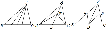 張爺爺家有一塊三角形的花圃△ABC,張爺爺準(zhǔn)備將其分成面積相等的四部分,分別種上不同的花卉.請你幫張爺爺設(shè)計三種不同的方案.
