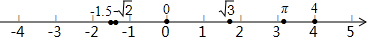在數(shù)軸上表示下列各數(shù),并把這些數(shù)按從小到大順序進(jìn)行排列,用“<”連接:π,4,-1.5,0,數(shù)學(xué)公式