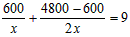 解得x=300,