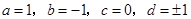 設a為最小的正整數(shù),b是最大的負整數(shù),c是絕對值最小的數(shù),d是倒數(shù)等于自身的有理數(shù),則a-b+c-d的值為 ( )