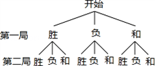 (2)如果兩人約定:只要誰率先勝兩局,就成了游戲的贏家.用樹形圖或列表法求只進行兩局游戲便能確定贏家的概率.