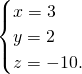 分析:第一、二個方程相減消去z,第二個方程兩邊乘以2變形后于第三個方程相減消去z,得到關(guān)于x與y的方程組,求出方程組的解得到x與y的值,進(jìn)而求出z的值,即可確定出原方程組的解.