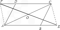 如圖,在平行四邊形ABCD中,E、F分別是邊AB、CD的延長(zhǎng)線上一點(diǎn),且BE=DF,連接EF交AC于O.