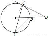 如圖AB、AC是⊙O的兩條弦,∠A=30°,過點(diǎn)C的切線與OB的延長線交于點(diǎn)D,則∠D的度數(shù)為 ▲ .