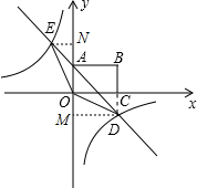 分析:(1)首先根據(jù)AB=2,BC=1,將矩形OABC沿x軸翻折,點B剛好落在雙曲線上的D點,得出D、A點坐標,再利用待定系數(shù)法求一次函數(shù)和反比例函數(shù)解析式;