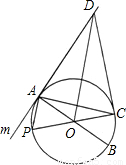 如圖,已知⊙O的直徑AB=2,直線m與⊙O相切于點A,P為⊙O上一動點(與點A、點B不重合),PO的延長線與⊙O相交于點C,過點C的切線與直線m相交于點D.
