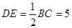 在△ABC中,D、E分別是邊AB、AC的中點(diǎn),若BC=10,則DE的長(zhǎng)是( )