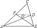 已知:如圖,△ABC是等邊三角形,D、E分別是BA、CA的延長(zhǎng)線上的點(diǎn),且AD=AE,連接ED并延長(zhǎng)到F,使得EF=EC,連接AF、CF、BE.![]()