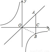 點評:本題主要考查了一元二次方程根與系數(shù)關(guān)系的應(yīng)用以及一次函數(shù)與反比例函數(shù)的綜合應(yīng)用,關(guān)鍵是列出關(guān)于k的方程以及利用勾股定理得出OB2-AB2=-2OC?BC.