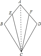 分析:連接AC,由AB=AD,CB=CD,加上公共邊AC,利用SSS可得出三角形ABC與三角形ADC全等,由全等三角形的對應角相等得到一對對應角相等,再由E、F分別為AB,AD的中點,利用中點定義及AB=AD,得出BE=DF,利用SAS可得出三角形BEC與三角形DFC全等,由全等三角形的對應邊相等可得出AE=AF,得證.