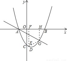 (2)可分別過E、G作x軸的垂線,設垂足為F、H;那么△AGE的面積=△AEF的面積+四邊形FHGE的面積-△AGH的面積,設出E點的坐標,即可表示出F點坐標及EF的長,根據(jù)上面所得出的面積計算方法,可得出關于△AGE的面積與E點橫坐標的函數(shù)關系式,根據(jù)所得函數(shù)的性質,即可求出△AGE的最大面積及對應的E點坐標;