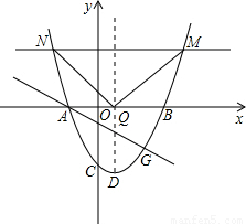 ②以MN為直角邊;設出M、N的坐標,可表示出MN的長,由于△MNQ是等腰Rt△,則MN的長與M、N的縱坐標的絕對值相同,由此可求出M、N的坐標,也就求出了Q點的坐標.