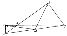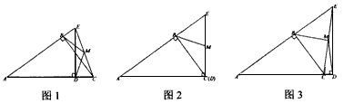 | 解:(1)結(jié)論:BM=DM,∠BMD=2∠BCD. (2)在(1)中得到的結(jié)論仍然成立.即BM=DM,∠BMD=2∠BCD. 證明:∵點M是Rt△BEC的斜邊EC的中點, ∴BM= 又點M是Rt△DEC的斜邊EC的中點, ∴DM= ∵BM=MC,BM=MC, ∴∠CBM=∠BCM,∠DCM=∠CDM. ∴∠BMD=∠EMB-∠EMD=2∠BCM-2∠DCM =2(∠BCM-∠DCM)=2∠BCD. 即∠BMD=2∠BCD. (3)所畫圖形如圖所示: 圖1中有BM=DM,∠BMD=2∠BCD; 圖2中∠BCD不存在,有BM=DM; 圖3中有BM=DM,∠BMD=360°-2∠BCD. |