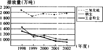 (1)請(qǐng)你在圖中用虛線、實(shí)線、粗線分別畫(huà)出二氧化硫排放總量、煙塵排放總量和工業(yè)粉塵排放量的折線走勢(shì)圖;
