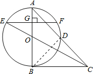 (2)AB=2,則圓的直徑為2,所以半徑為1,即OB=OE=1,利用勾股定理求出CO的長,再通過證明△EGO∽△CBO得到關(guān)于EG的比例式可求出EG的長,進而求出EF的長.