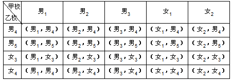 (4)若甲校體育教師中有3名男教師和2名女教師,乙校體育教師中有2名男教師和2名女教師,從甲乙兩所學(xué)校的體育教師中各抽取1名體育教師去測(cè)試學(xué)生的身體素質(zhì),用樹狀圖或列表法求剛好抽到的體育教師是1男1女的概率.